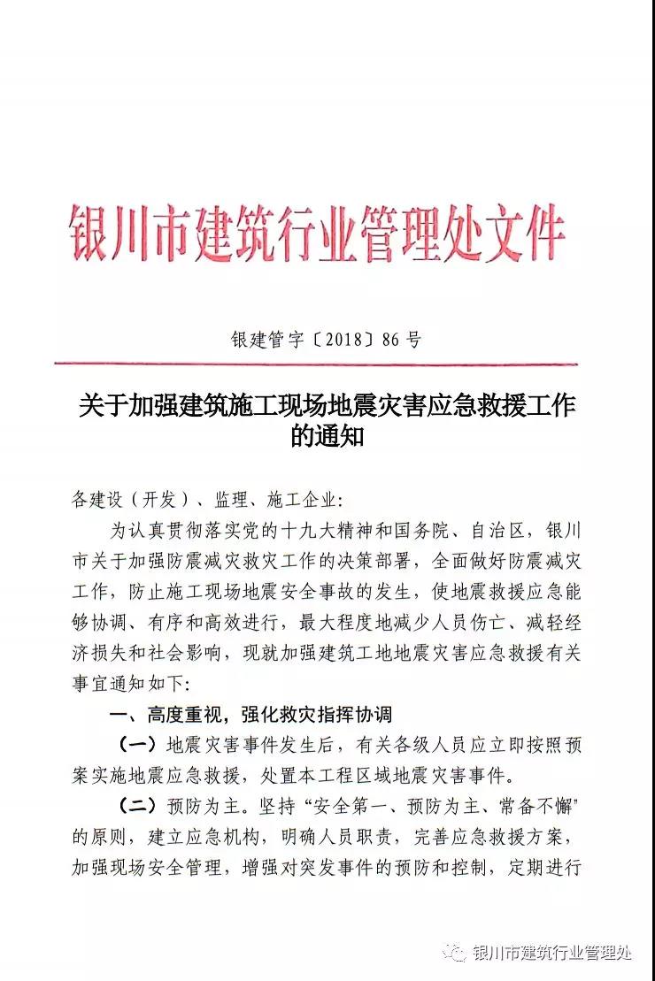 《關(guān)于加強建筑施工現(xiàn)場地震災(zāi)害應(yīng)急救援工作的通知》