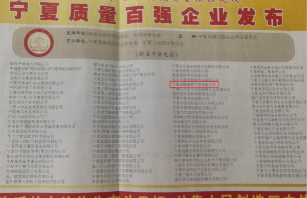 為深入貫徹習(xí)近平新時(shí)代中國(guó)特色社會(huì)主義思想和黨的十九大精神,喜迎自治區(qū)60周年大慶,落實(shí)自治區(qū)黨委政府重大戰(zhàn)略決策部署,引導(dǎo)和激勵(lì)我區(qū)企業(yè)加強(qiáng)質(zhì)量管理,提高產(chǎn)品加工、工程技術(shù)、優(yōu)質(zhì)服務(wù)的質(zhì)量化管理意識(shí),強(qiáng)化企業(yè)質(zhì)量主體作用,加快質(zhì)量技術(shù)創(chuàng)新,推進(jìn)經(jīng)濟(jì)提質(zhì)增效升級(jí)。在2018年全區(qū)“質(zhì)量月”活動(dòng)期間,寧夏回族自治區(qū)企業(yè)協(xié)會(huì)、寧夏工業(yè)園區(qū)聯(lián)合會(huì),聯(lián)合自治區(qū)相關(guān)廳局和行業(yè)協(xié)會(huì),以“大力開(kāi)展質(zhì)量提升行動(dòng),加快實(shí)施質(zhì)量強(qiáng)區(qū)建設(shè)”為主題,進(jìn)行了寧夏區(qū)內(nèi)質(zhì)量百?gòu)?qiáng)企業(yè)的評(píng)選。