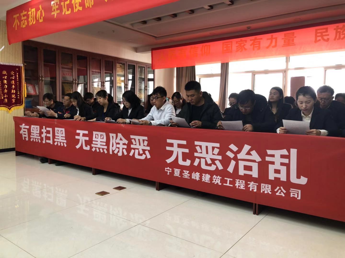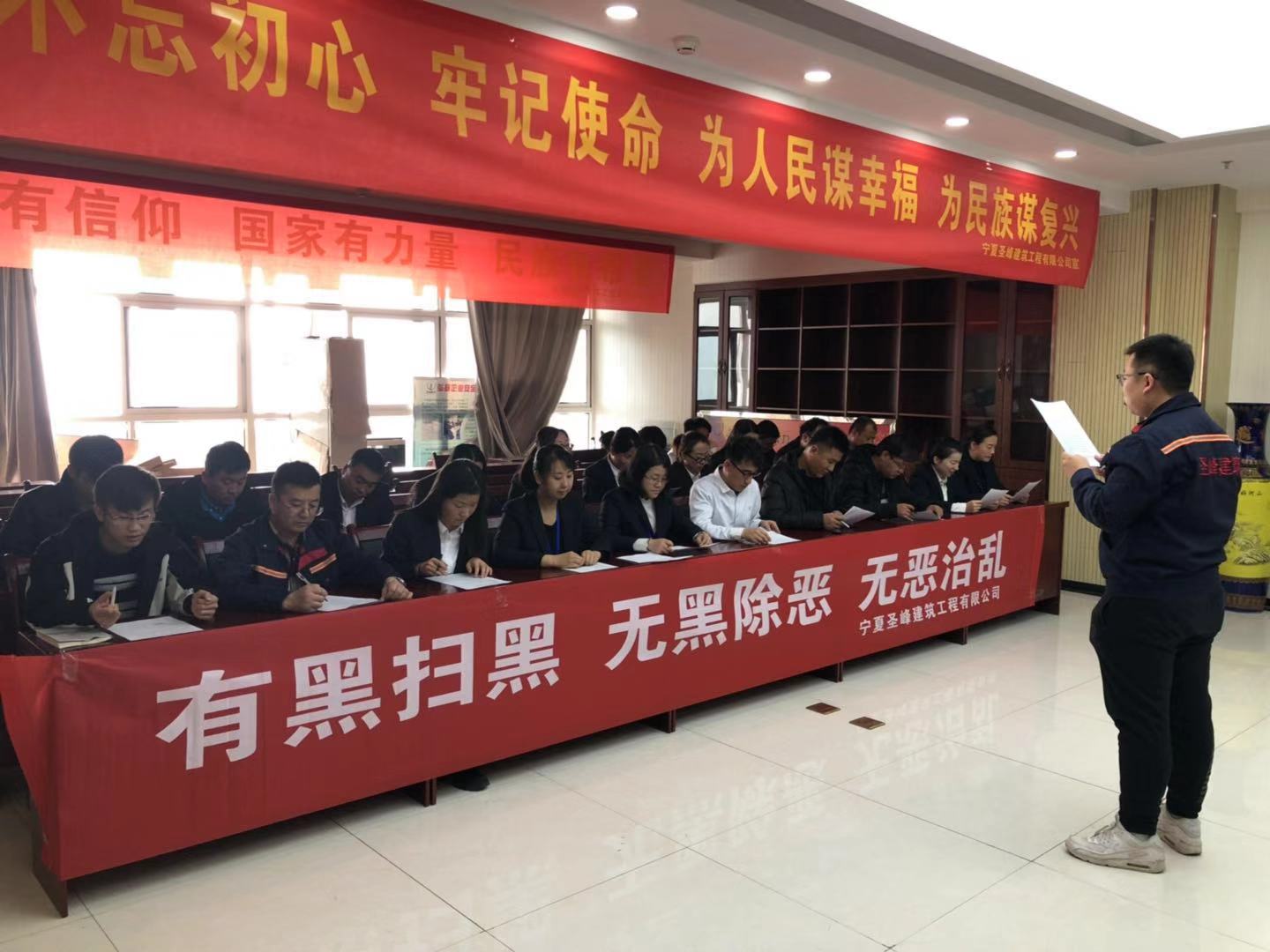 為一步做好掃黑除惡專項(xiàng)斗爭工作,提高掃黑除惡專項(xiàng)斗爭的知曉率、參與率、滿意率。營造企業(yè)良好的法制教育環(huán)境和氣氛,教育公司職工樹立良好的法律意識(shí),共建平安和諧企業(yè)。2019年2月25日上午,寧夏圣峰建筑工程有限公司組織全體員工召開掃黑除惡專項(xiàng)斗爭學(xué)習(xí)會(huì)議。