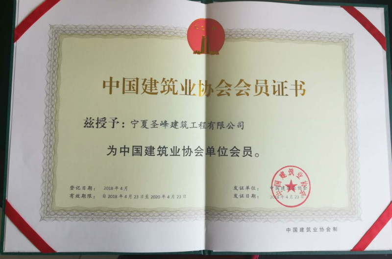 熱烈慶祝寧夏圣峰建筑工程有限公司加入中國建筑業(yè)協(xié)會(huì)